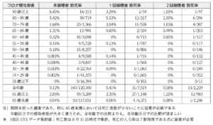 表6.コロナ感染陽性者のワクチン接種回数と致死率(2021年7月)