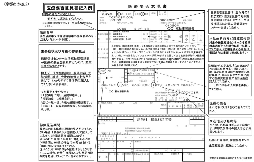 京都市以外の地域につきましても,医療要否意見書の様式は若干異なりますが,ご記載いただく内容は同様ですのでご活用ください。