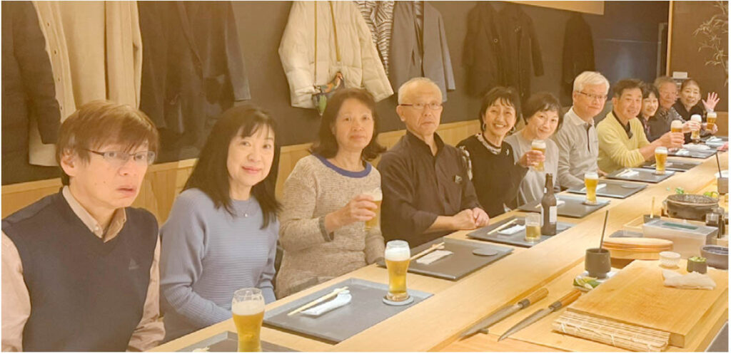 8日(土),兵庫・大阪・京都から計12名の参加を得て,錦「鮨しん」にて懇親会を開催いたしました。先日行われた全日本医師テニス大会兵庫大会の報告に加え,全日本医師テニス協会理事長・原文雄先生より,今後の大会開催に関するご説明をいただきました。鮨を囲みながら和気あいあいとテニス談義や近況報告などが交わされ,終始和やかな雰囲気の中で有意義な交流の場となりました。