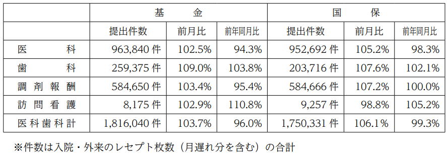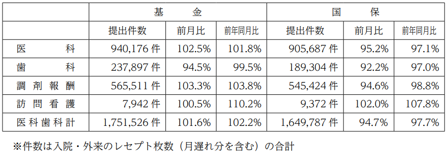 基金・国保への提出件数・平均点数等