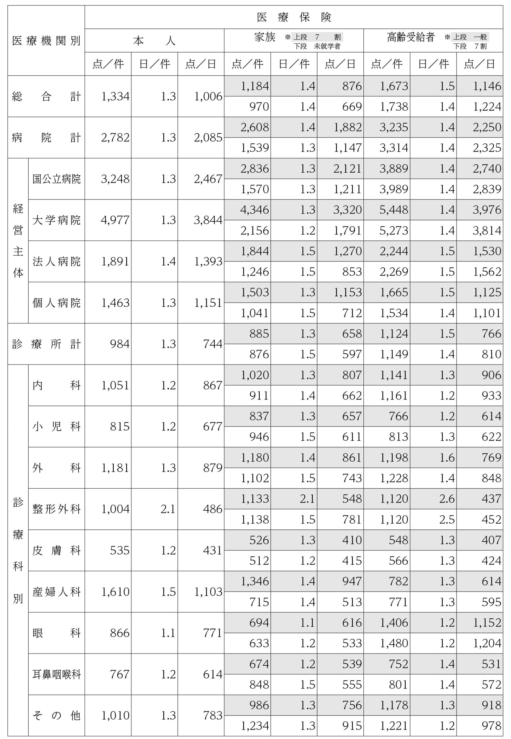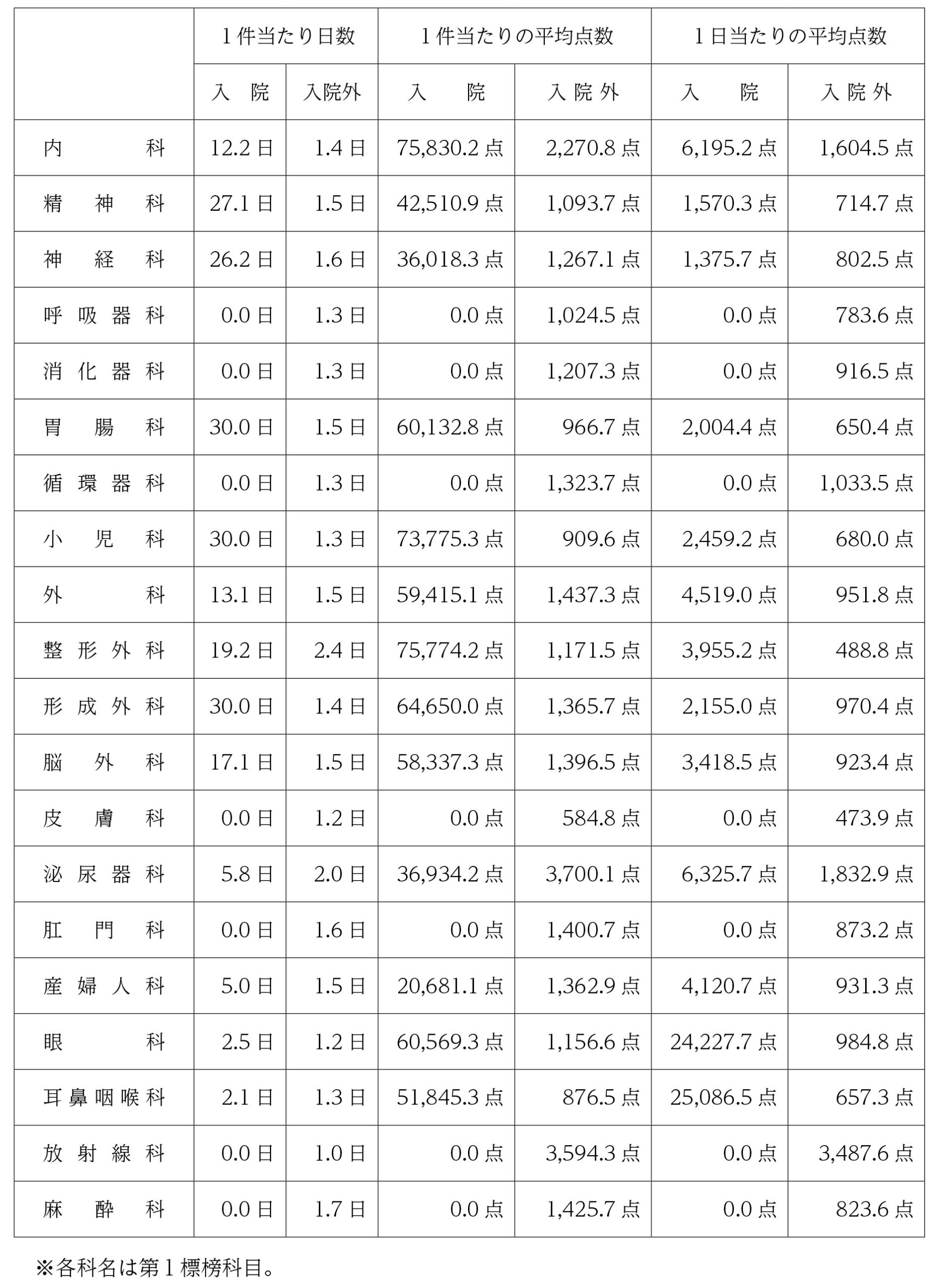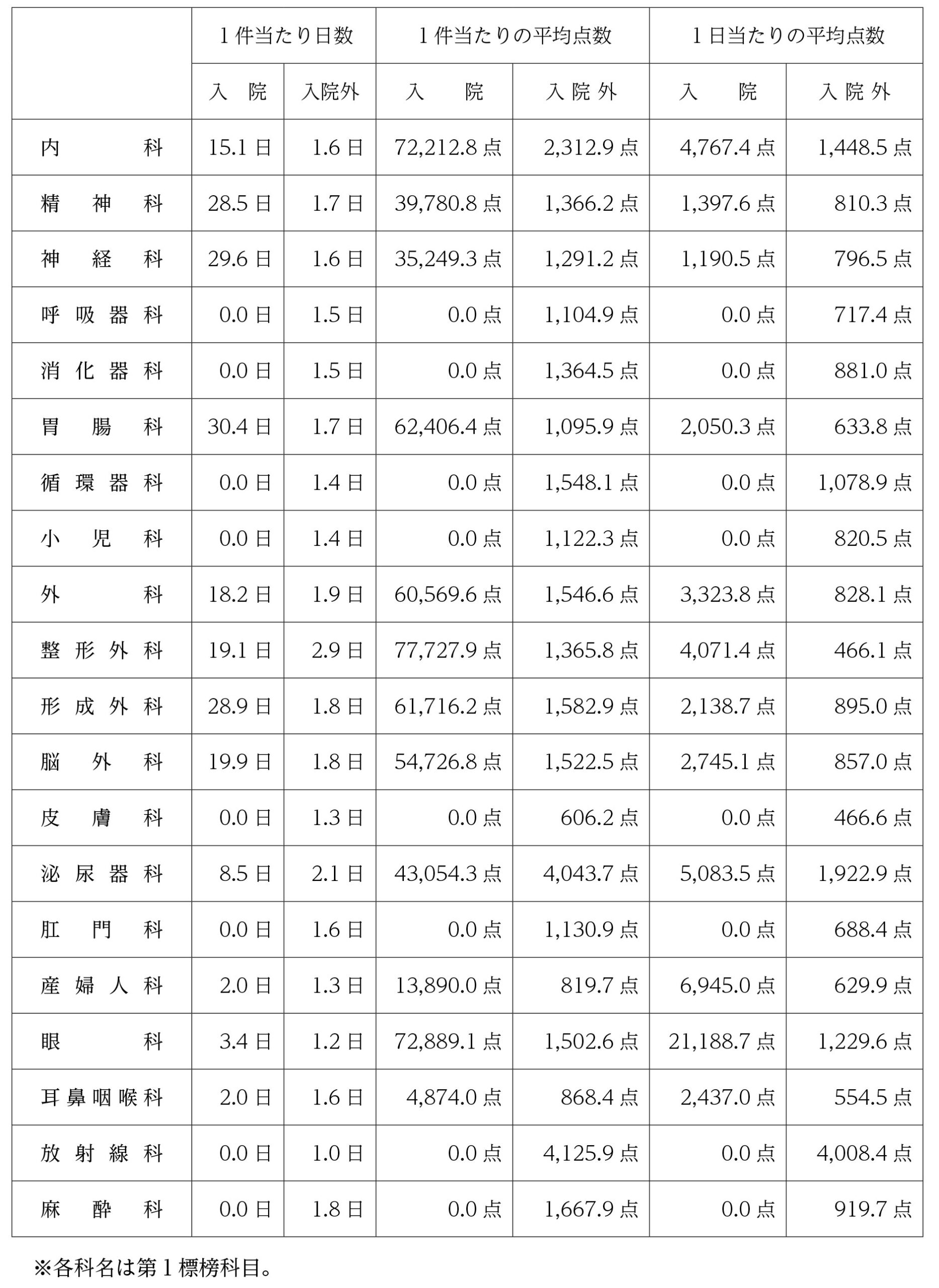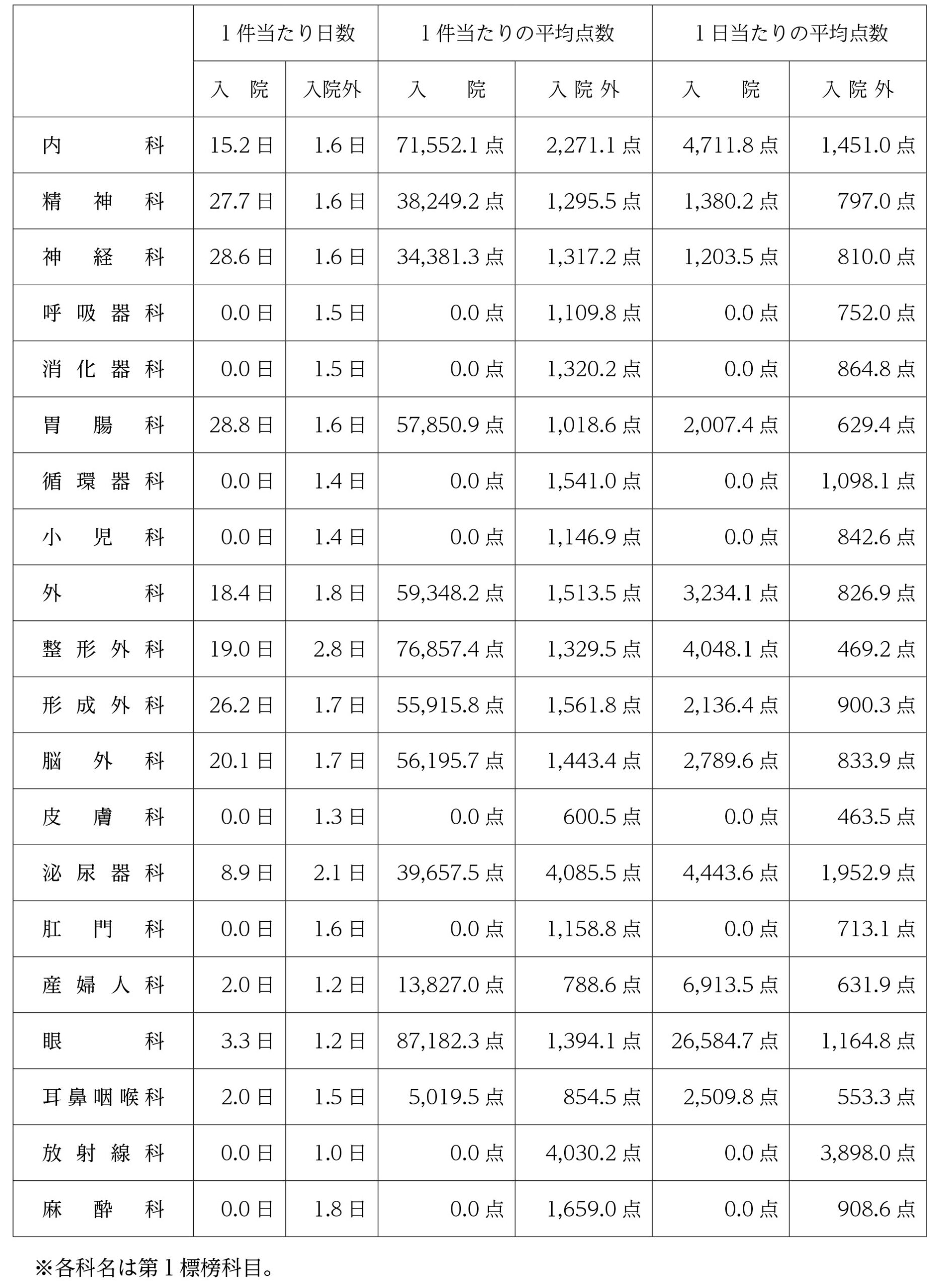 3.国保連合会における診療科別平均点数