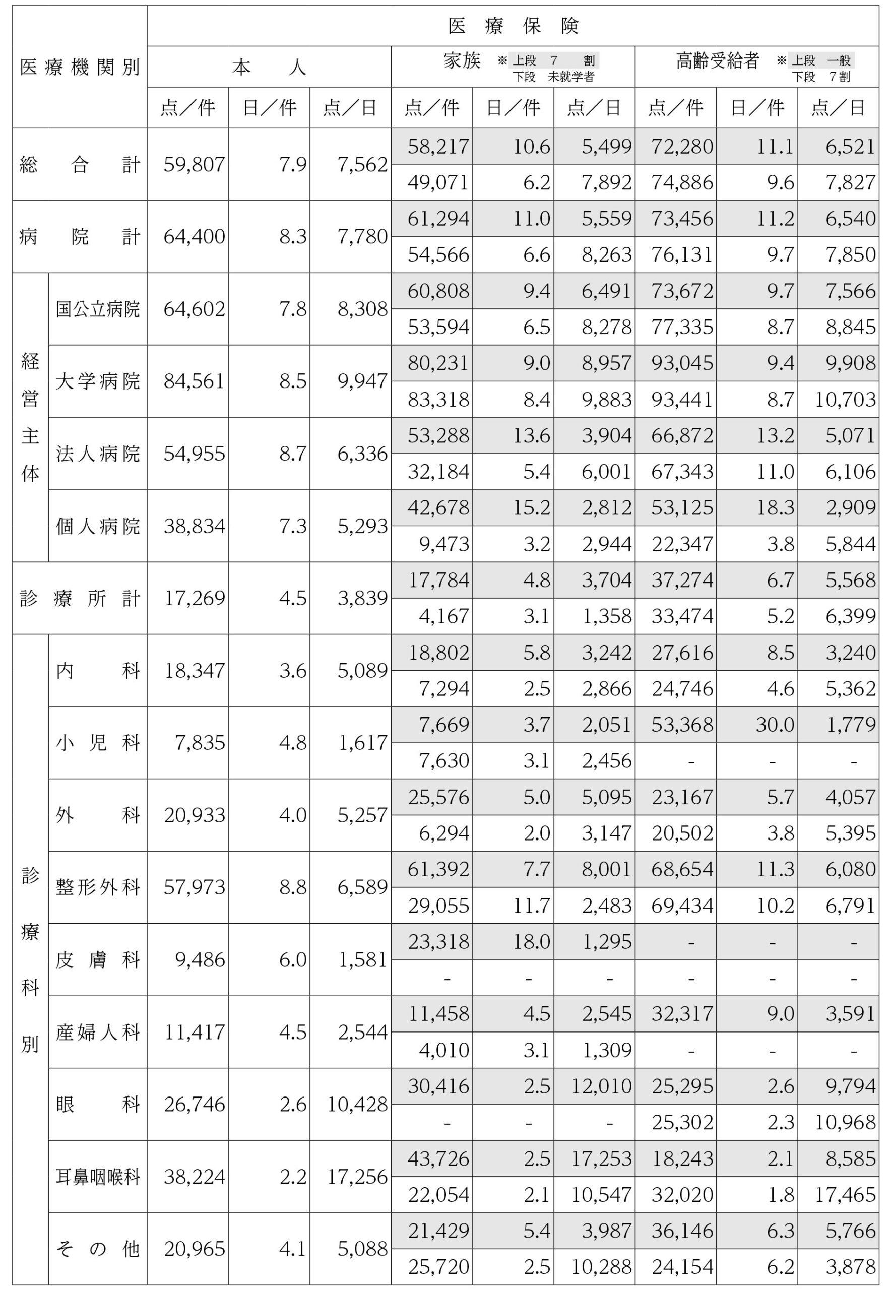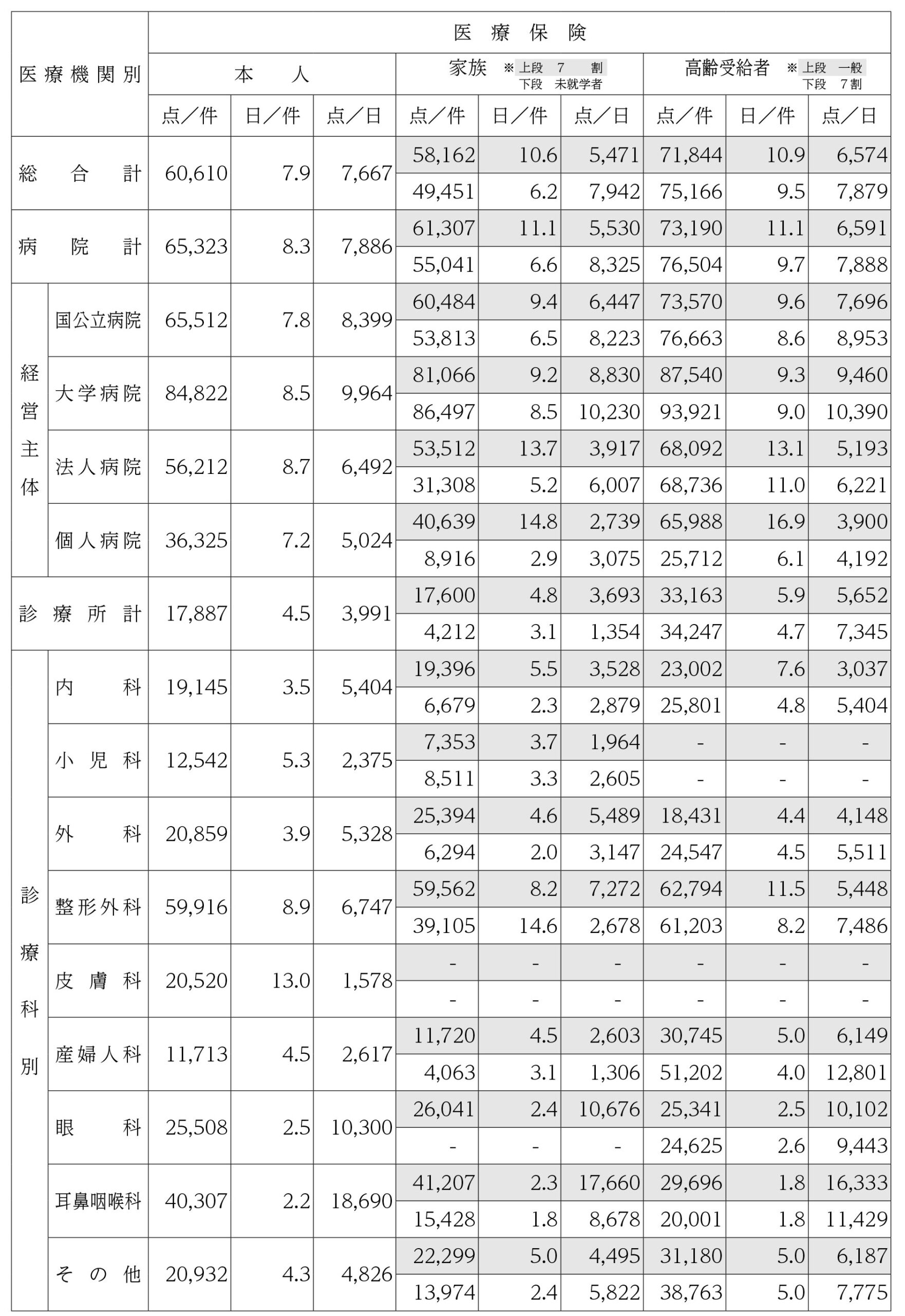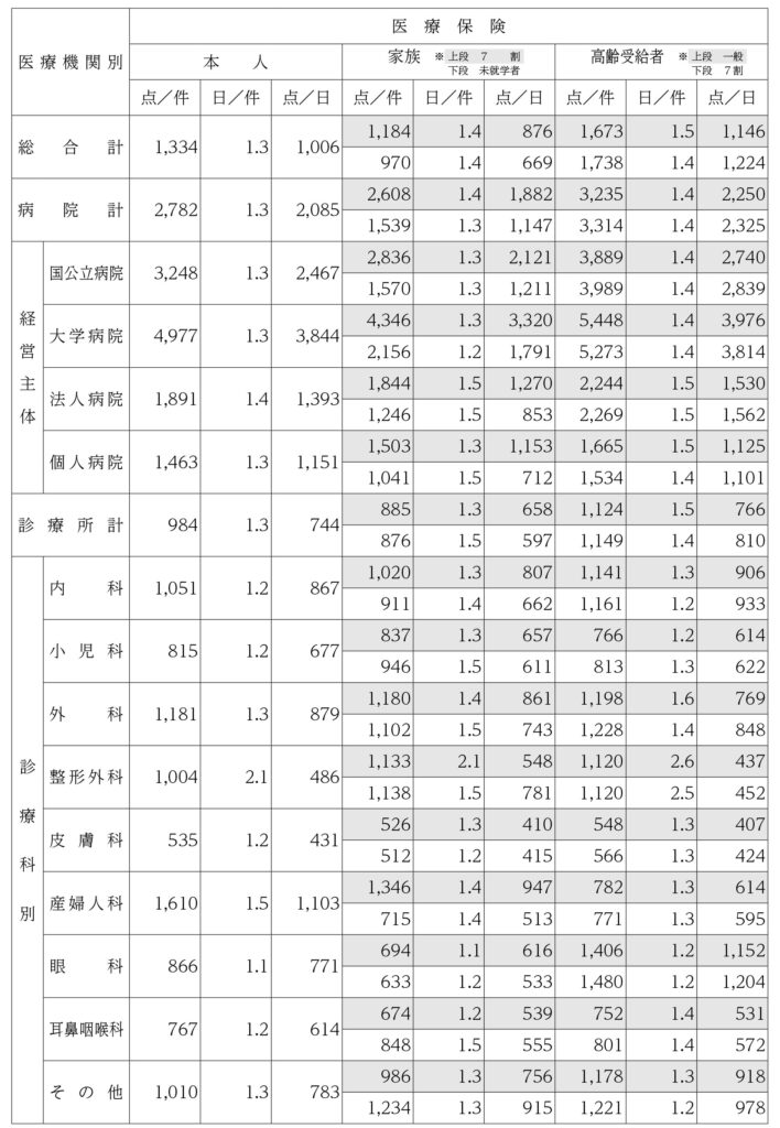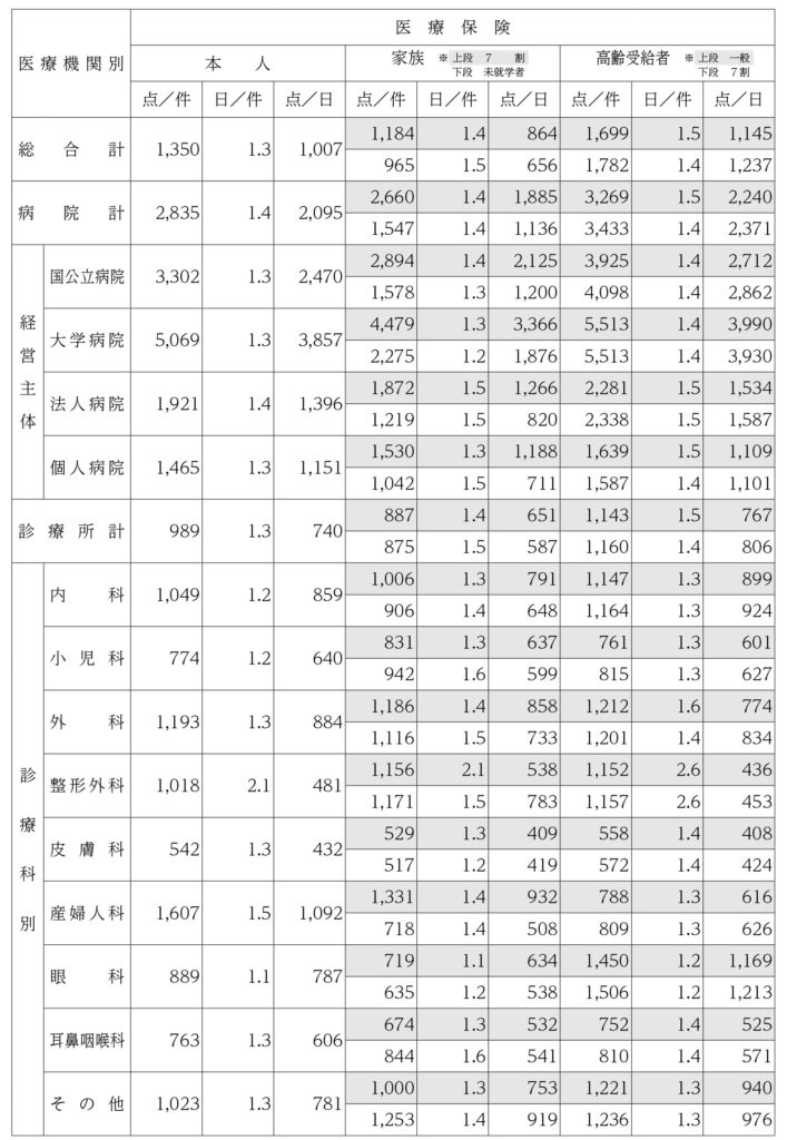 4.支払基金における診療科別等平均点数(全国計)