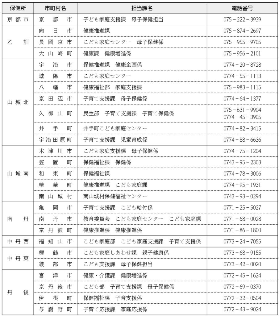 表.妊婦のための支援給付に係る市町村の連絡先一覧