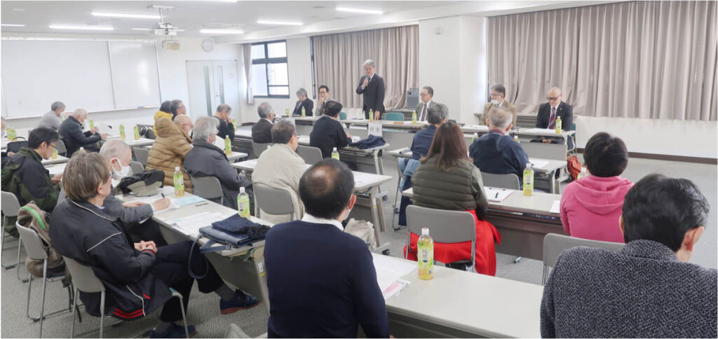 宇治久世医師会と府医執行部との懇談会が12月10日(水),うじ安心館で開催され,宇治久世医師会から27名,府医から6名が出席。「市町村が行う健康診断や予防接種などの行政サービスにおける地域格差」,「外来機能報告制度,かかりつけ医機能報告制度」,「施設入所における情報提供書の提出」をテーマに議論が行われた。