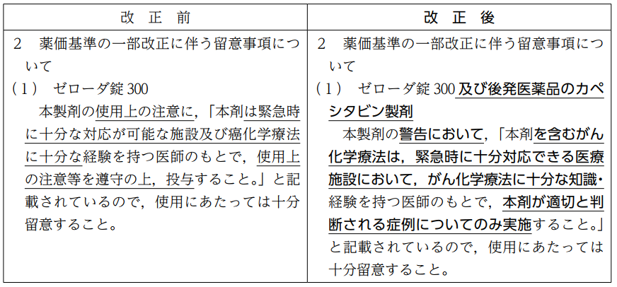 (1)「使用薬剤の薬価(薬価基準)の一部改正について」(平成 15 年6月6日付け保医発第0606001 号)の記の2の(1)を次のように改める。(傍線部分は改正部分)