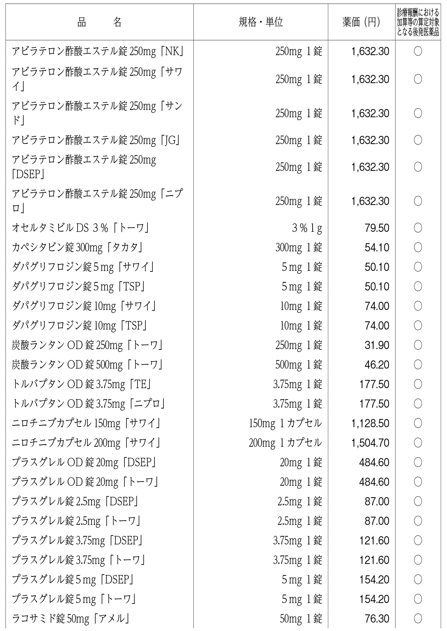 (1) 「診療報酬における加算等の算定対象となる後発医薬品」等について(令和7年3月7日付け保医発 0307 第2号)を以下のとおり改正する。