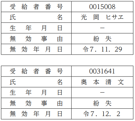 次のとおり京都府健康福祉部長より無効通知が送付されましたので,ご留意ください。