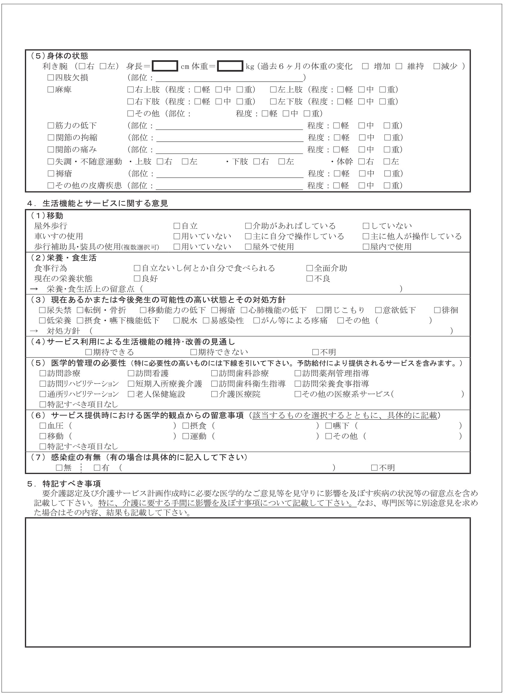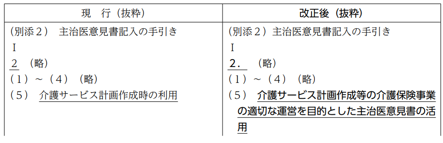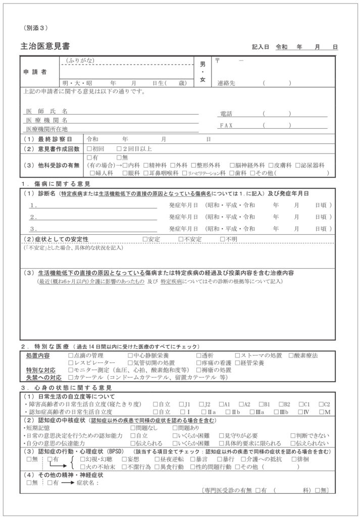 主治医意見書の様式の変更点は,介護サービス計画作成等に利用されることについての主治医の同意欄と特記事項欄における添付資料が廃止されています。