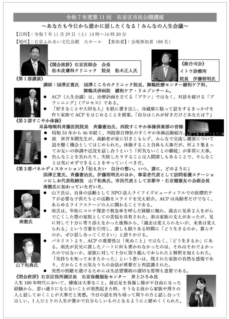 最後に、昨年の11月に右京ふれあい会館で開催された右京区市民公開講座の様子を写真とともにご紹介いたします。